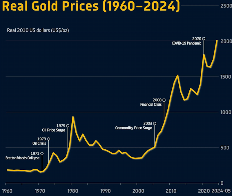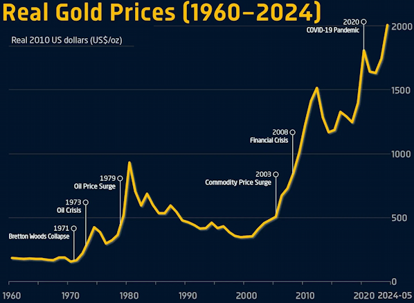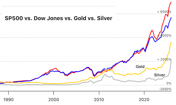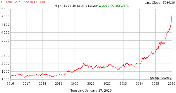 From January, 2024 to January 2026 the price of gold more than doubled from $2,042 to $5,000..That's a 40% annual rate of return.