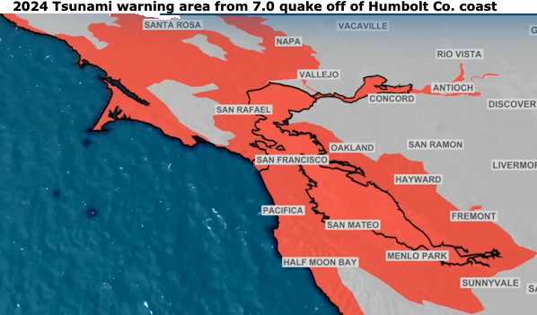 In 2024 a 7.0 Earthquake 7 miles of the coast in Humboldt Co California caused a phone warning U.S. Tsunami Warning System | NOAA / National Weather Service and notification of emergency managers and other local officials, the public, and other partners about the potential for a tsunami following a possible tsunami-generating event. People throughout north western California got the notices over their phones from the National Weather Service .