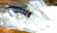 ![]() About 100 yards upstream from the Pedrick Rd. bridge there is a narrow spot in the river where you can get close to a fast moving section. The fish will jump to get thru that section. | |