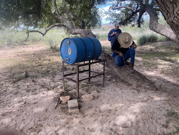 A walnut tree in the middle of the desert 13 miles West of Agua Prieta, 3 miles north of highway 2 and about a mile south of the border near Agua Puerta, Sonora, Mexico where a Presbyterian church group set up a water drum and brought food to camped immigrants. There were no immigrants there during our visit.
