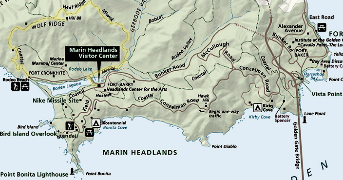 | 1. | Head towards the Marin Headlands Visitors Center, Steps 1-6 above. |