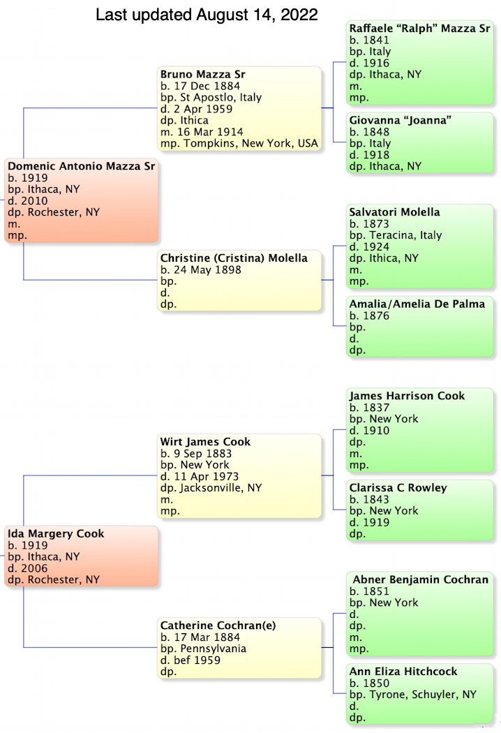 Domenic Mazza and Ida Margery Cook Ancestors Mazza Cook