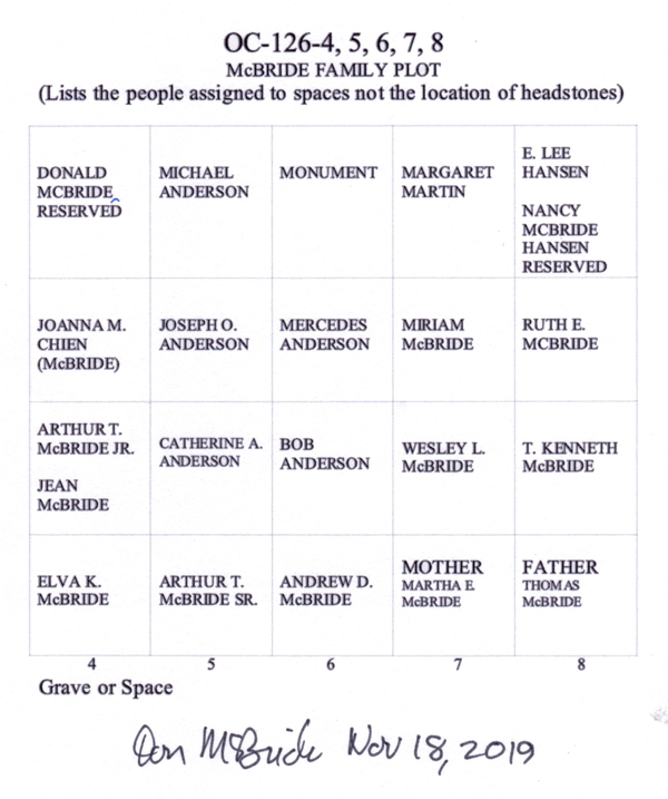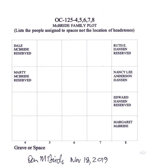 This is the plan submitted to the cemetery to show current and future space reservations.