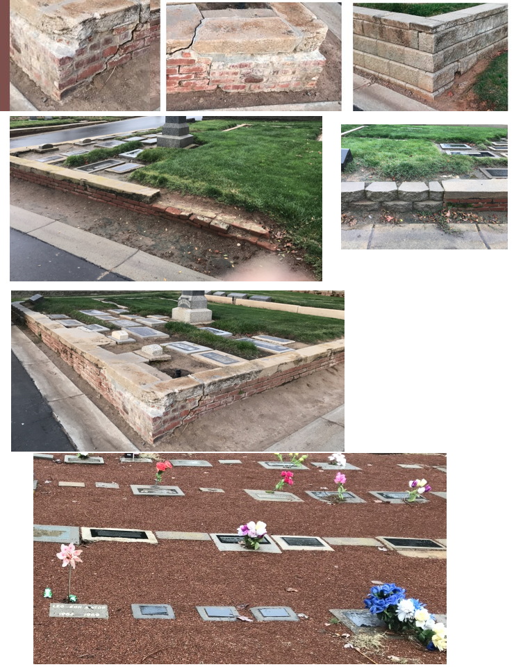 The corner of the brick wall around our plot was knocked out when they put in curbs some time ago. It was fixed once but cracked again. They are replacing these with new borders, but we will have to cover half the cost. I'll check to see how much that will cost.