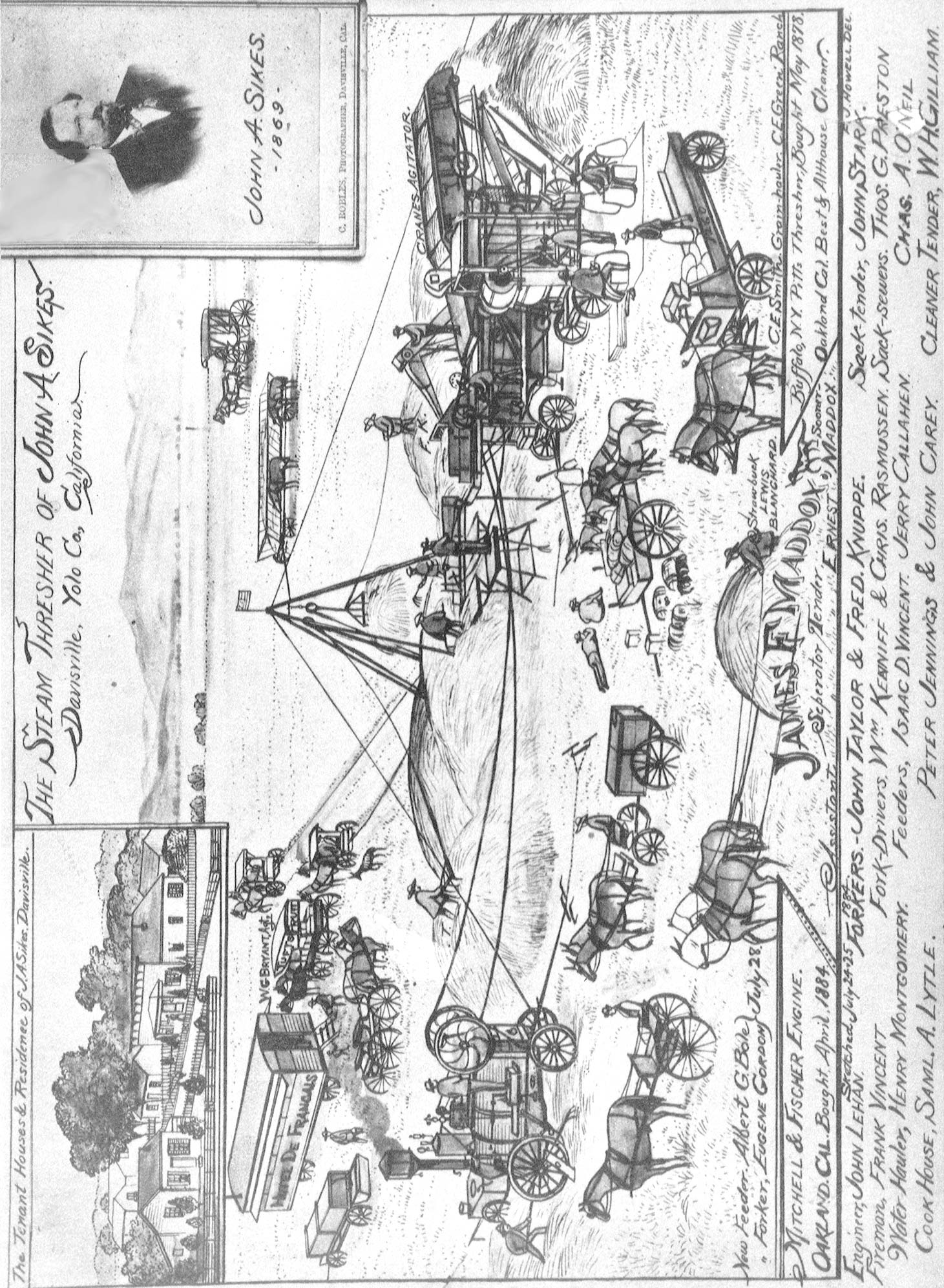 John Alva Sikes Ranch  (* High resolution picture.) Sketch made by traveling salesman/artist. Alva's ranch was also near Davis, but it was not adjacent to Jonathan's ranch. We don't know the exact location of his ranch.