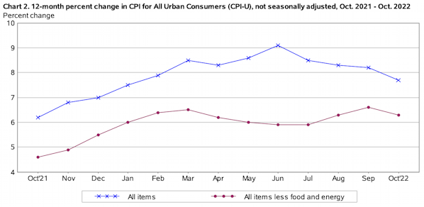 12 Month percent change in CPI all urban Consumers (CPI-U)