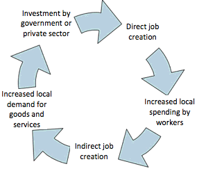 This extra spending allows businesses to hire more people and pay them, which in turn allows a further increase in consumer spending.