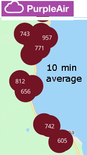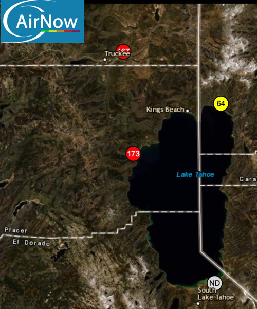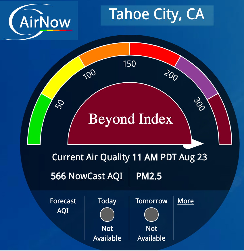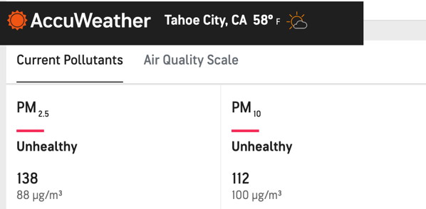 E.g. on August 23 2021 AQI at Tahoe City was reported as: Purple Air - 770-957 AirNow (EPA)- 566 AccuWeather - 138