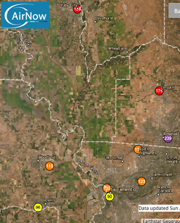Sensors: Accuweather Plume Labs AirNow (EPA) The AirNow site displays hourly, not real-time, readings. Fire and Smoke Map EPA Purple Air The data comes from the commercial sensors the company sells, which members of the public install on porches, yards and other neighborhood sites. Sensors are less accurate than AirNow You can click on "standard" in the box at the bottom to get a conversion to match other AQI systems.Discrepencies in reports: