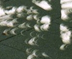 Look for crescent shaped images of the eclipsed sun in the shadows below a tree.