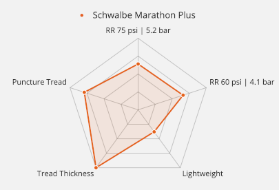 with a total thickness of 9.0 mm the Schwalbe Marathon Plus is the thickest tire of all tires tested to date. |