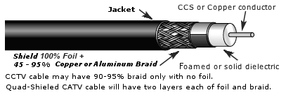 Coaxial Cable can come in many grades based on the type of shield, conductors and diaelectric.