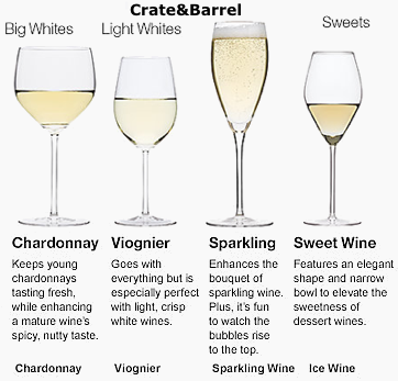 Chardonnay/White Burgundy/Chablis work best in wider-bowled glasses similar to the Burgundy glass, though in such cases the bowl can be somewhat smaller.