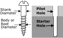 Drill and Auger Bit Sizes for Wood Screws | ConstructionManuals.tpub.com