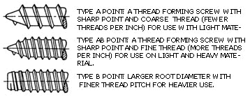 Types: wood, sheet metal, drywall, deck, concrete, lag