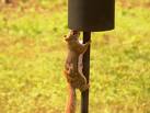 | Under Construction   Squirrel-Proofing Your Bird Feeders: This challenge brings out a primitive "man against animal" instinct in many of my friends which have tried everything from greasing the poles to electric shock to stop the them. Squirrels are very ingenious even understanding Newton's laws. Putting myself inside a squirrels brain I conjectured that they would think chewing the cord between two trees from which the feeder hung would destroy their path to the food, but they figured out that gravity would bring the food to them.