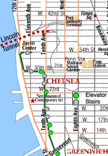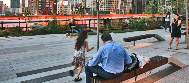 The High Line is a 1.45-mile-long New York City linear park built on a section of a disused New York Central Railroad spur called the West Side Line.