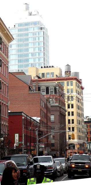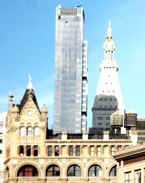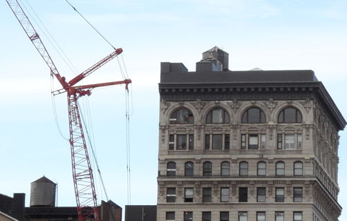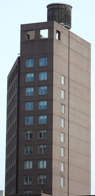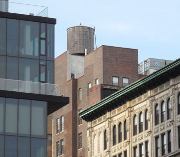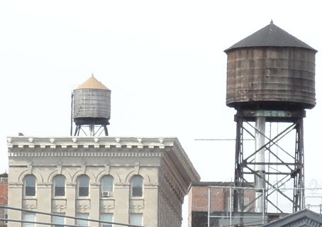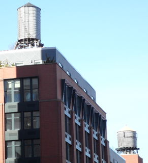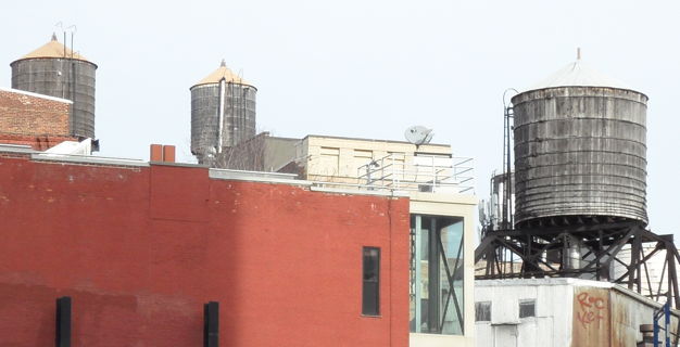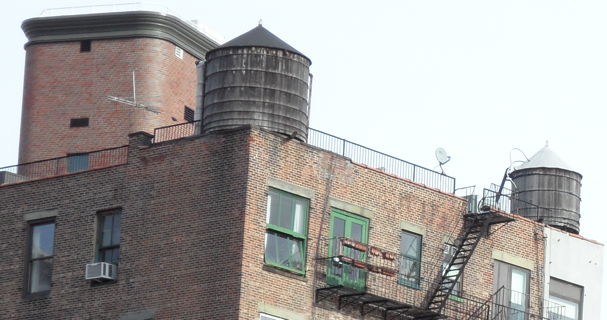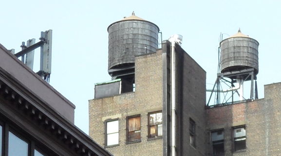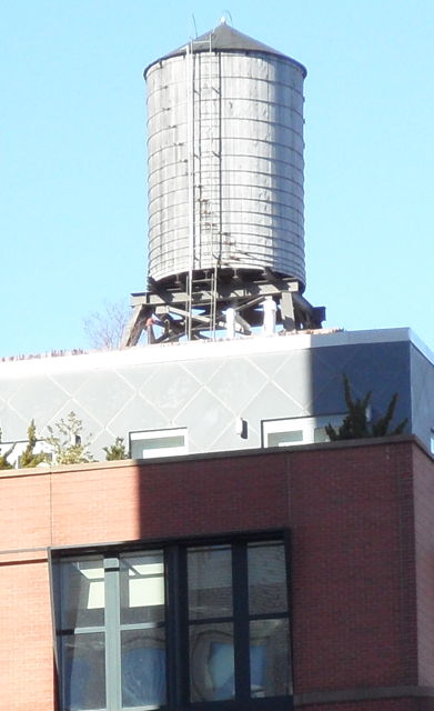 New York City's water flows from upstate reservoirs through hundreds of miles of tunnels into city mains and arrives with only enough pressure to supply water up to the sixth floor of most buildings. Since the late 1800s, owners of taller buildings have employed pumps in the basement to carry water up to a wooden tank on the roof.
