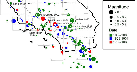 Source: Statewide View at California Geological Survey - Historical California Earthquakes