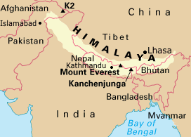 | Everest | 8,848 | 29,035 | Nepal/China |