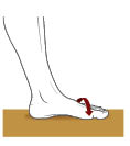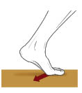 4) Toe-off As your weight shifts to the opposite heel, your foot becomes a giant lever and you roll over the ball of the foot to the ends of your toes. Use all five toes, gripping the ground for stability and extra propulsion. Your big toe provides the final push off, but the majority of your weight should be shifted to the other leg by this point. Avoid Shuffling From the toe take-off position, lift your foot behind you as your opposite foot hits the ground. This promotes a nimble, rocking weight transfer rather than a pounding one. Omitting this final toe-off phase (by shuffling or dragging your feet) jars joints from head to toe. Also, avoid pushing off with your toe so forcefully that you bounce, which wastes energy. |