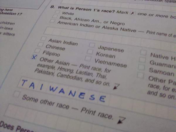 In Feburary 2010 I called the census bureau out of curiosity because they do not list Taiwanese as an example under either "Other Asian" or "Other Pacific Islander". The guy I talked had no clue; I don't think he even knew where Taiwan was let alone the political issues with China. He seemed to look at some list of standard answers and said to use "Other Asian" and write it in.![]() Source: Ted Fu Technically most Taiwanese came from China (based on my limited knowledge) whether from Henan Province 1,500 years ago, Fujian Province in 1644 or with Chiang in 1949, but considering the political situation (see Taiwan page) I suspect you might not want to put Chinese under race on the census form. It seems to me the best choice would be either Other Asian or Other Pacific Islander.