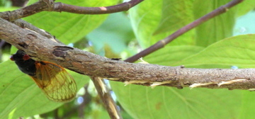 Adult periodical cicadas live only for a few weeks--by mid-July, all have disappeared.Their short adult life has one purpose: reproduction. The males "sing" a species-specific mating song; like other cicadas.  It sound creates  a loud din (up to 100 dB) in many areas.