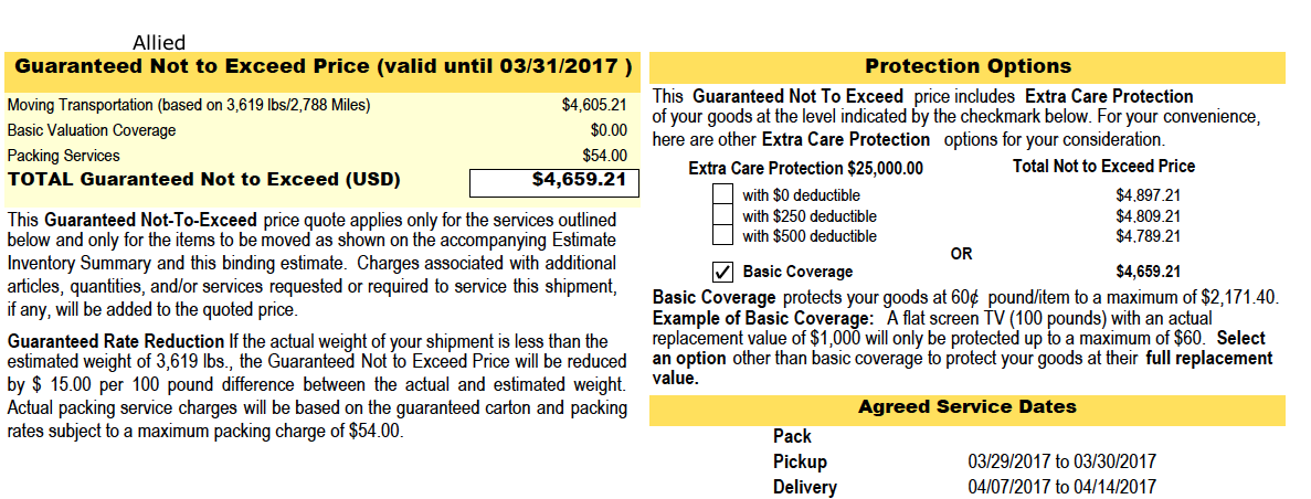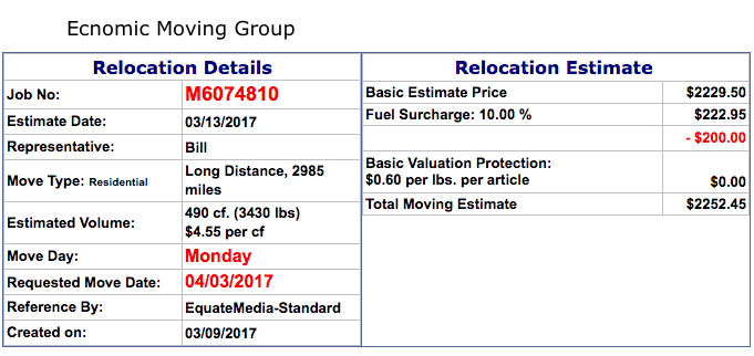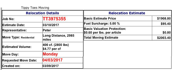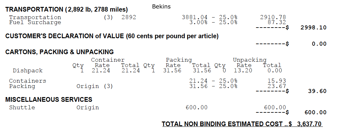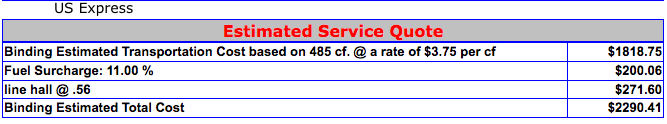 Estimates for my move about 400-500 cu ft 3,000 lbs