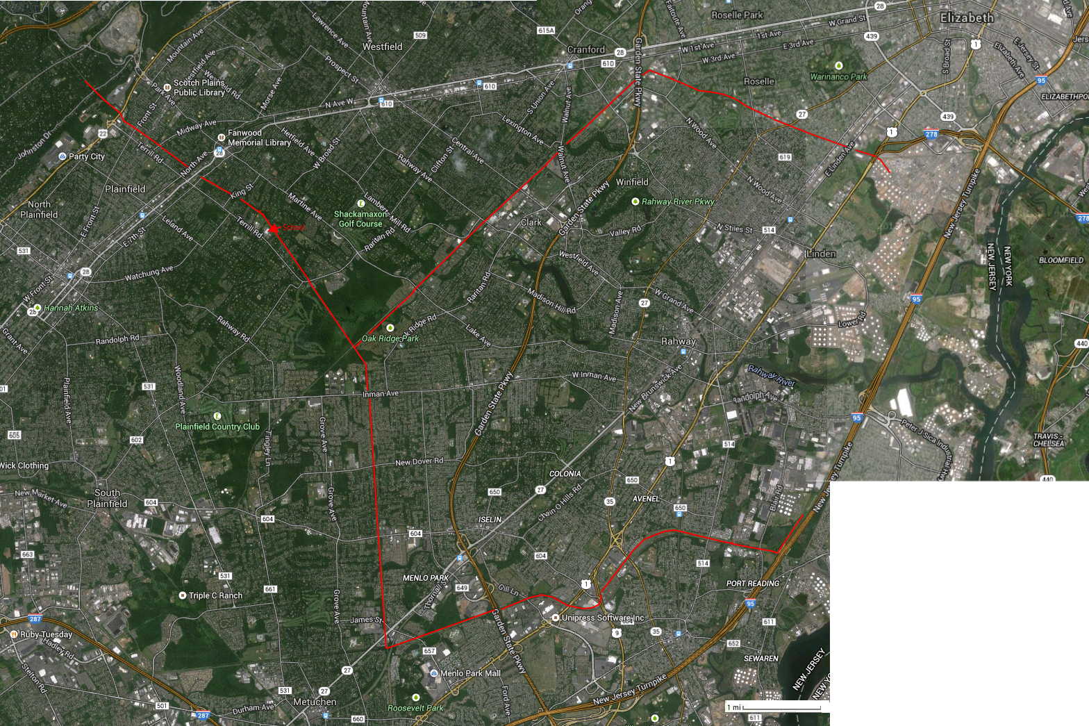 The combined pipes heads north-west following the PSEG electric corridor from the Edison/Clark border thru Scotch Plains, where it goes within 100 yards of the Terrill Middle School.