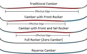 Early skis were wood and fairly straight with 4 mm sidecut (narrower at the waist than the shoulder and tail) with a little camber (ski bow up underfoot). Ski construction has become very sophisticated over the last 40 years with everything from honeycomb cores to Piezo-ceramics that can convert high frequency mechanical energy to electrical energy. Contents: Sidecut-Shape | Camber-Rocker | Materials-Construction | Books - Links