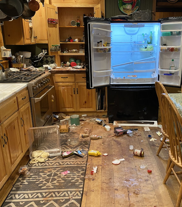 They made a mess in the kitchen and living room but didn't get into the rest of the house.