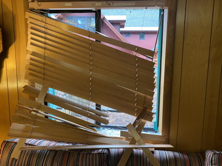 They had also pulled down the screen on the window over the LR desk which was 5 ft off the ground, so I put up the storm window with an extra support.