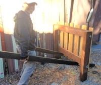 Chair lift swing. Take off cushion.  Put logs under each end for support.