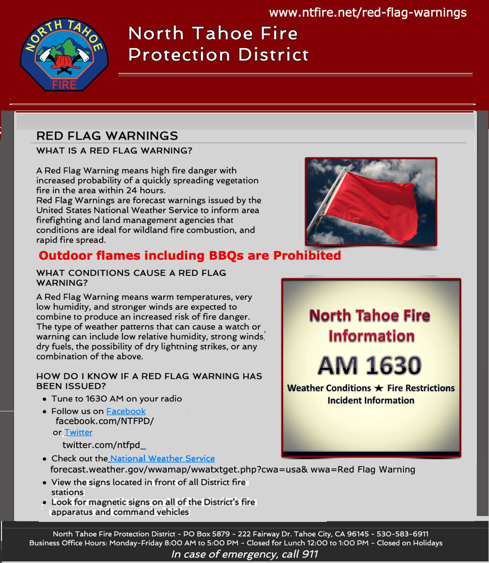 A page dedicated to red flag warning that has the following information that you can print and have in your home