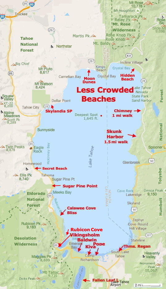 Sources: Don and Sean McBride Quiet Lake Tahoe Beaches That Are Worth The Trip | Holiday Inn Club Five secluded Tahoe beaches to hit this summer 5 Beautiful, Secluded Beaches of Lake Tahoe | Property Alliance Blog | |