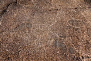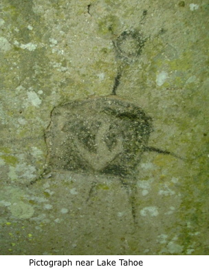 Source: Ancient Petroglyphs of the Northern Sierra Nevada, Daniel G. Foster, 2009 On a backpack trip in 2010 a local guy showed us a turtle like pictograph near Tahoe.   The nearest thing I could find on the web was a turtle like pictograph near Quaaout Lodge in south-central British Columbia.