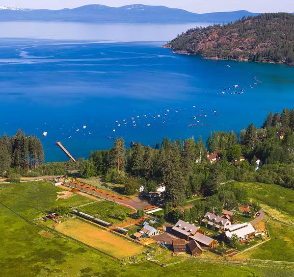 It has over 423 feet of sandy shoreline on Lake Tahoe, a 397-foot shared pier with boat lift, five boat moorings, and nearly 40,000 square feet of improvements is now for sale, currently the most expensive ski property in the country.