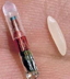 |  |  E-ZPass, FasTrak, ... toll payment. RFID   |  |  Implant for pet identification next to rice grain. (RFID PIT tag) In dogs and cats, chips are usually inserted below the skin at the back of the neck between the shoulder blades on the dorsal midline.